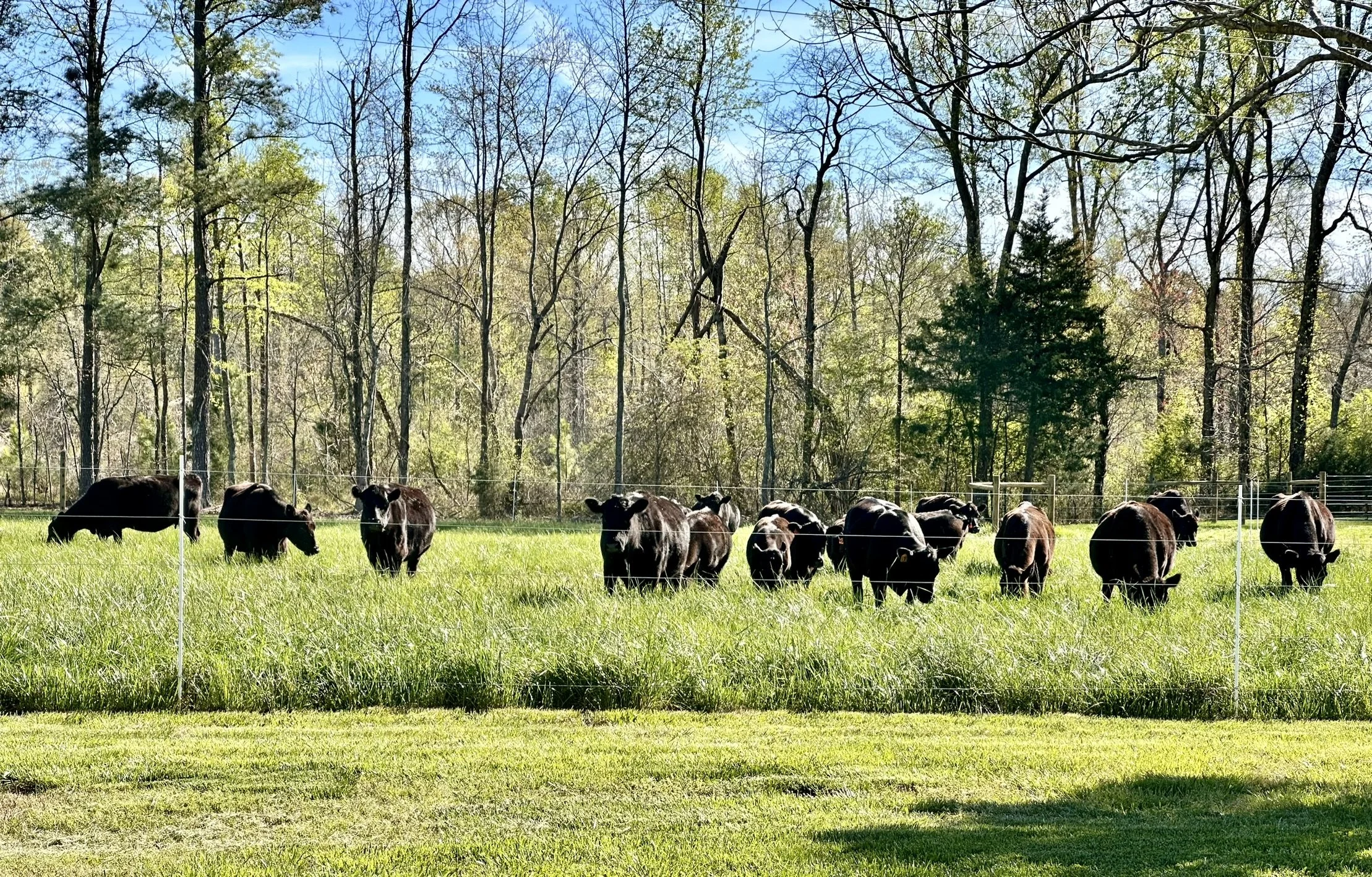 To speak of the land without speaking to those tending it would be only half the story. The first two generations of Hicks’ ownership were tobacco farmers. The third generation, Wayne Hicks, took a different turn with tobacco by entering the corporate arena via Universal Leaf Tobacco Co. Wayne had a successful professional career spanning 35 years advocating for and processing and selling tobacco into worldwide markets. After retirement, he and Peggy settled back to the farmstead. They performed extensive renovations to the house, outbuildings, and land – including the introduction of the Black Angus cattle. The Black Angus have been on the property since the early 2010’s. The sales of feeder calves and hay produced from the fields was a supplementary income to offset the farm’s maintenance expenses. In early 2022, Steve and I purchased the house and some acreage from Wayne and Peggy to officially become the fourth generation tending the land. As the fourth-generation farmers on the property, we are now working to scale up our production and provide pasture-raised beef to the local communities. To do this, we are implementing new, innovative means to maximize the land’s capabilities and efficiencies.